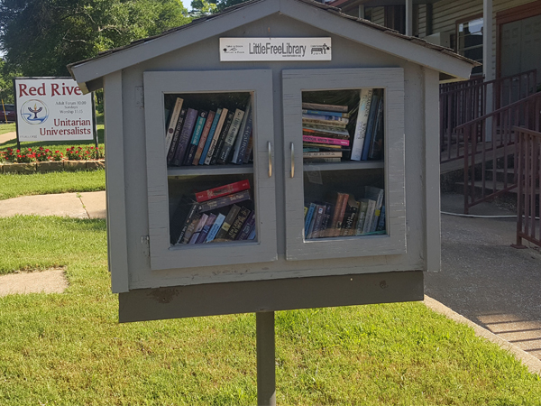 Our Little Free Library was built in 2014 after a member was inspired by a model in Wisconsin. At the time, it was the only one in Grayson and Bryan counties. Today several exist because the idea spread! Since the pandemic, we’ve also used one shelf as a mini-pantry for anyone needing food support.